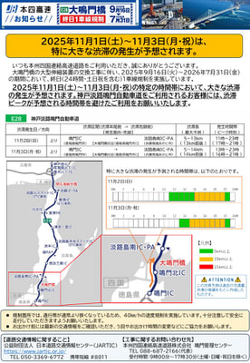 4. 11月連休: 2025年11月1日(土)~11月3日(月・祝)は特に大きな渋滞の発生が
