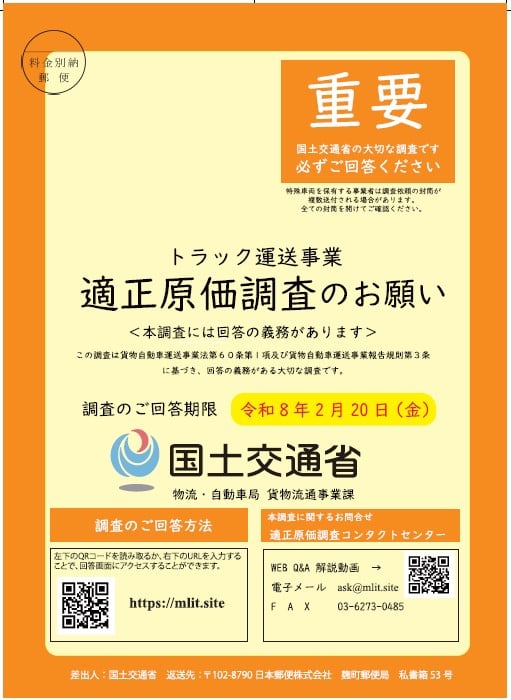 を実施することとなりました。本調査は貨物自動車運送事業法第60条に基づき報告を求