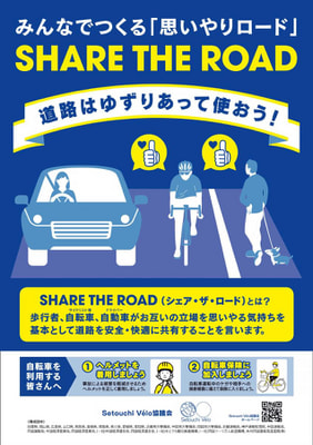「SHARE THE ROAD」シェア・ザ・ロード 道路はゆずりあって使おう! 2026年4月 6日 その他のお知らせ シェア・ザ・ロードとは?歩行者、自転車、自動車がお互いの立場を思いやる気持ちを基本として道路を安全・快適に共有することを言います。